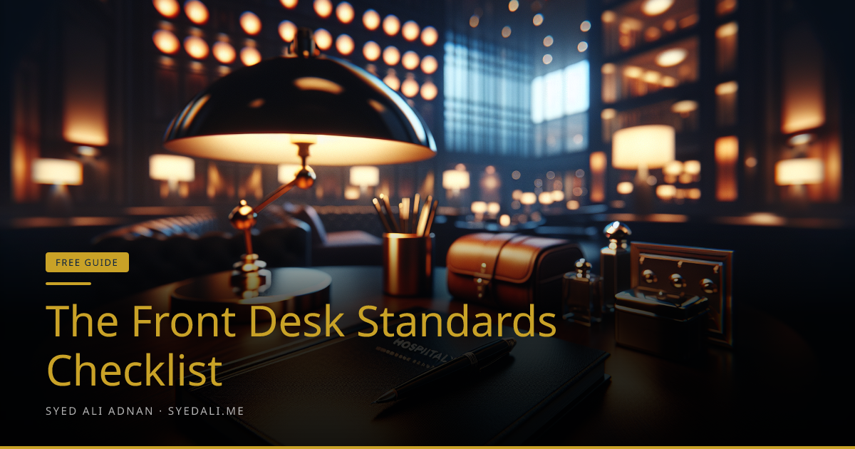 The exact daily checklist used at Galt House Hotel (1,300+ rooms). Pre-shift prep, check-in standards, complaint handling, VIP protocols & end-of-shift accountability — all in one printable page.